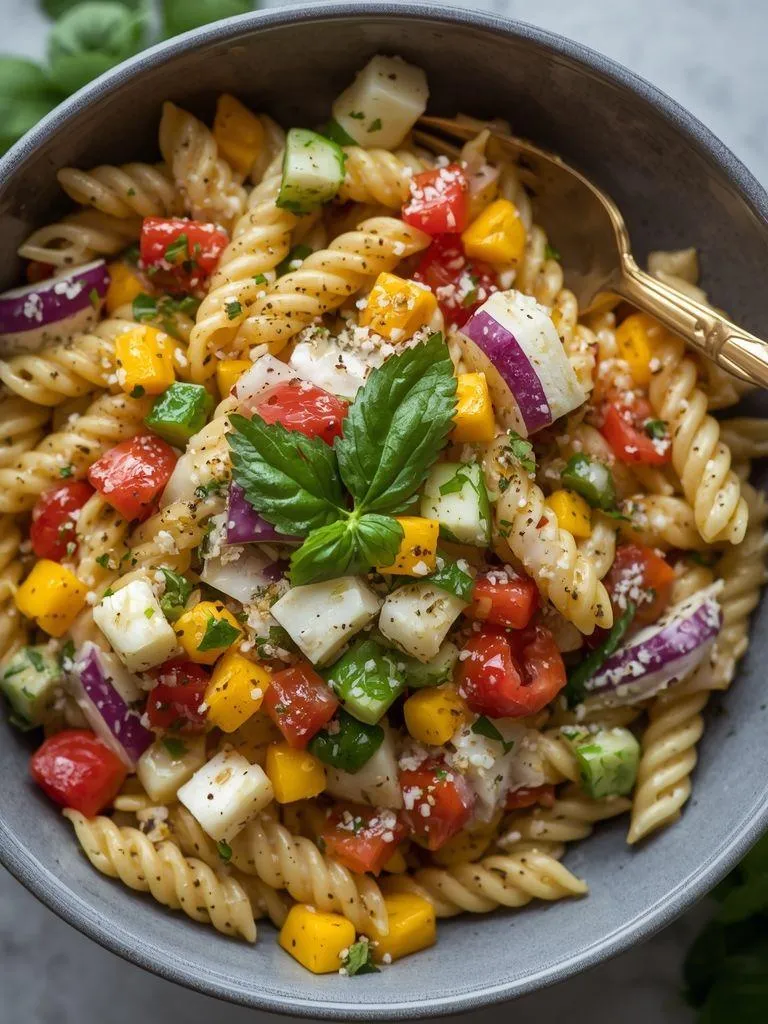 Aus den Kräutern, Öl, Salz, Pfeffer und Essig ein Dressing herstellen.