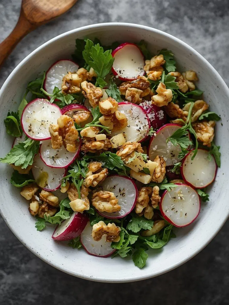 Den Rettich ind dünne Scheiben schneiden und etwas salzen.