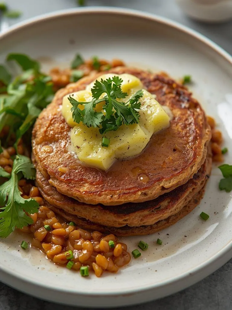 Buckwheat pancakes with red lentils and kohlrabi
