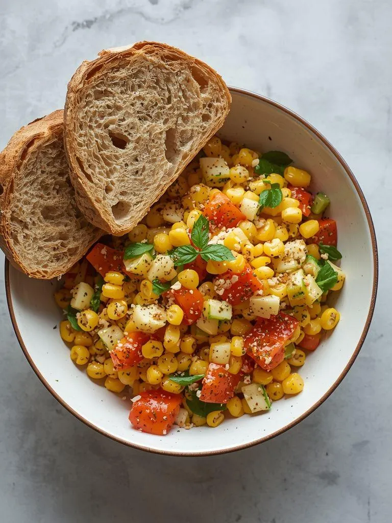 Corn, Bell Pepper and Chia Seed Salad (with Bread)