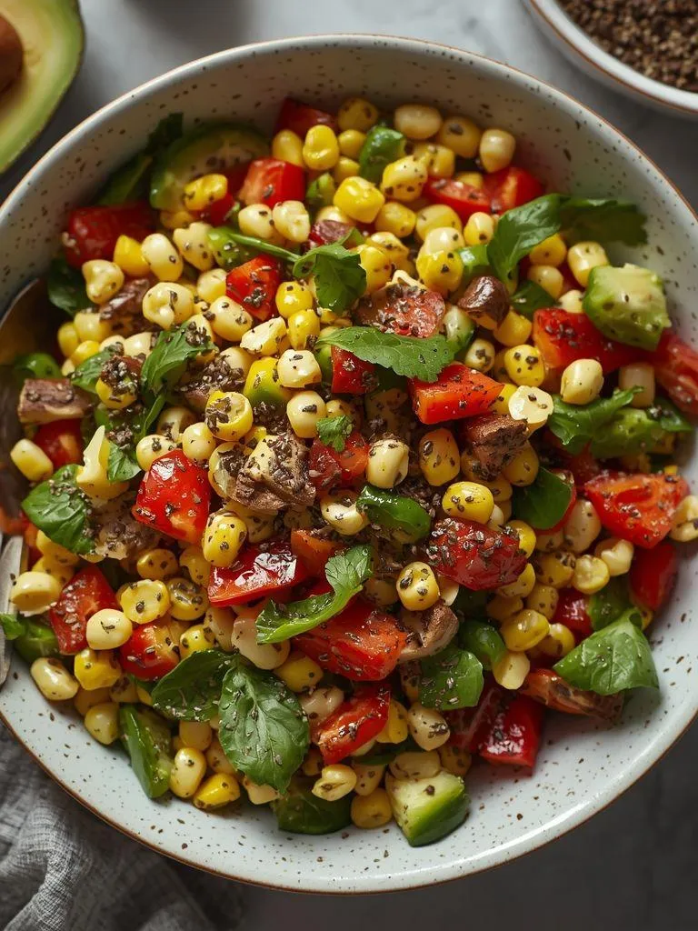 Corn, bell pepper and chia seeds salad