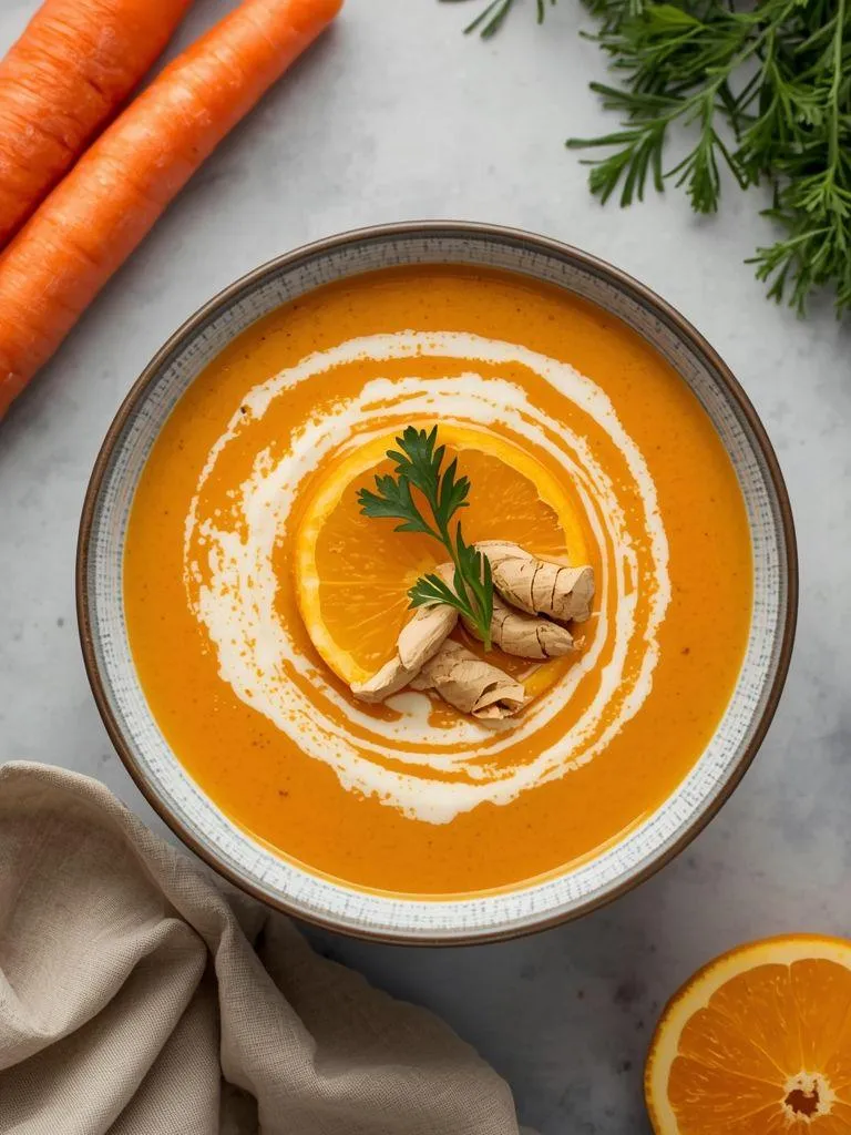 Add orange juice, ginger, and cream to the prepared broth and cook briefly.