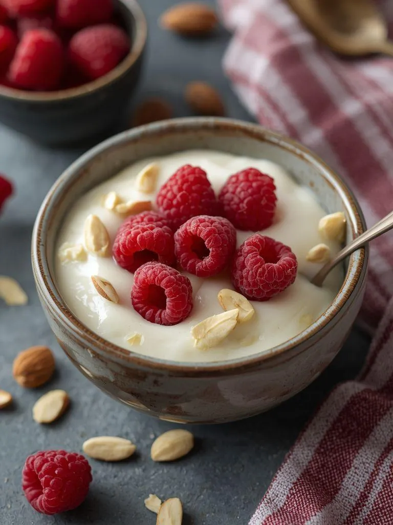 Rice pudding with almond milk and raspberries