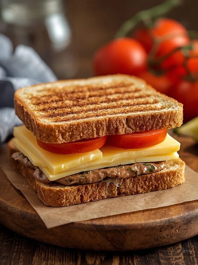 Sandwich with Butter, Yellow Cheese, and Tomato