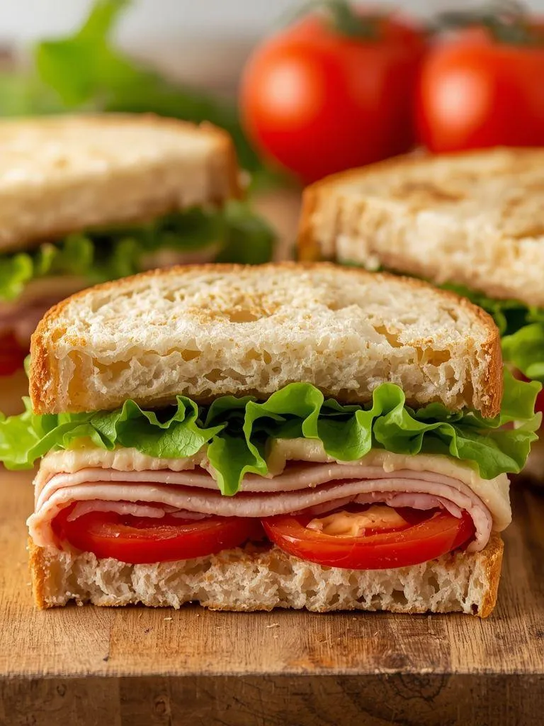 Turkey Ham Sandwiches with Lettuce and Tomatoes