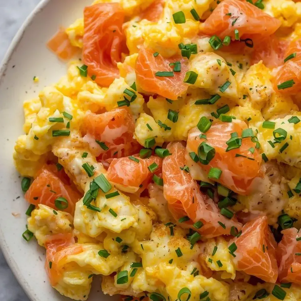 Jajecznica z wędzonym łososiem i szczypiorkiem