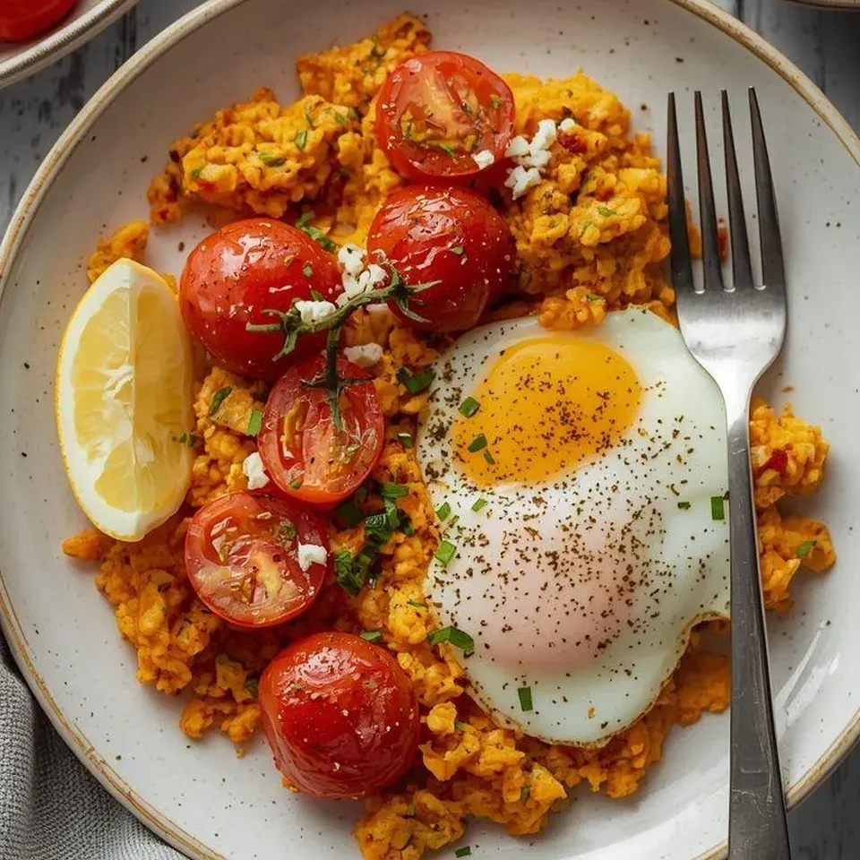 Jajecznica z pomidorem i kabanosem