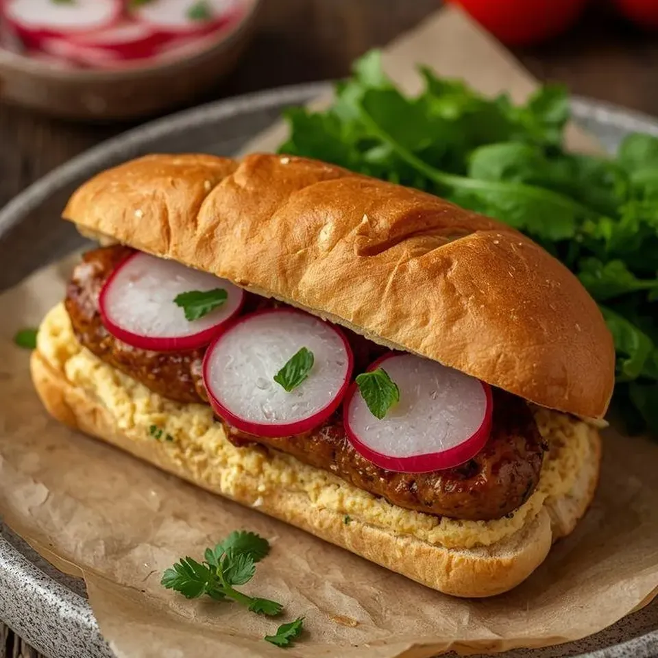Kanapka z kabanosem, hummusem i rzodkiewką