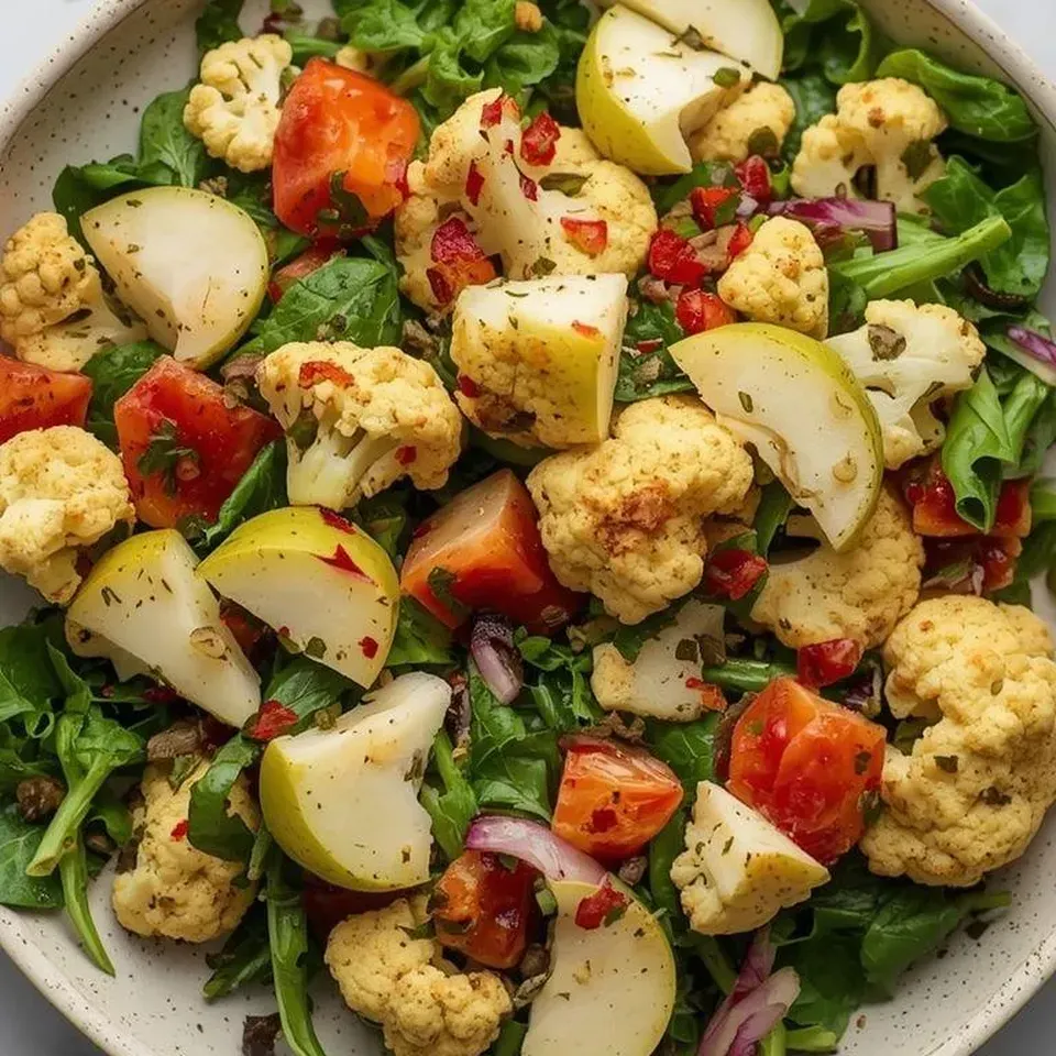 Sałatka kalafiorowo-brokułowa z ogórkiem i koperkiem