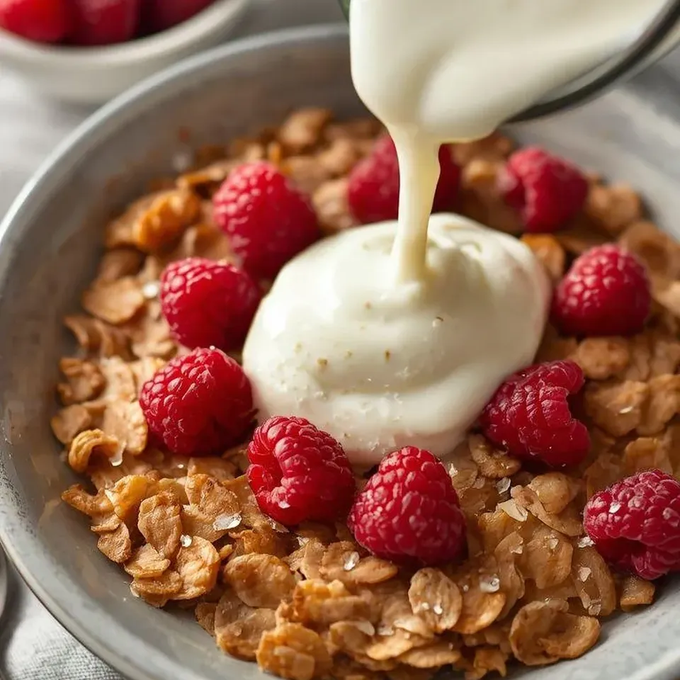 Płatki owsiane z malinami i sosem jogurtowo-jabłkowym