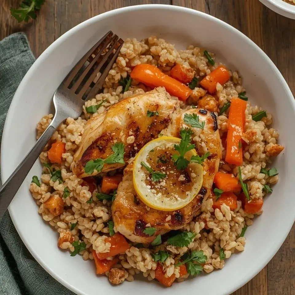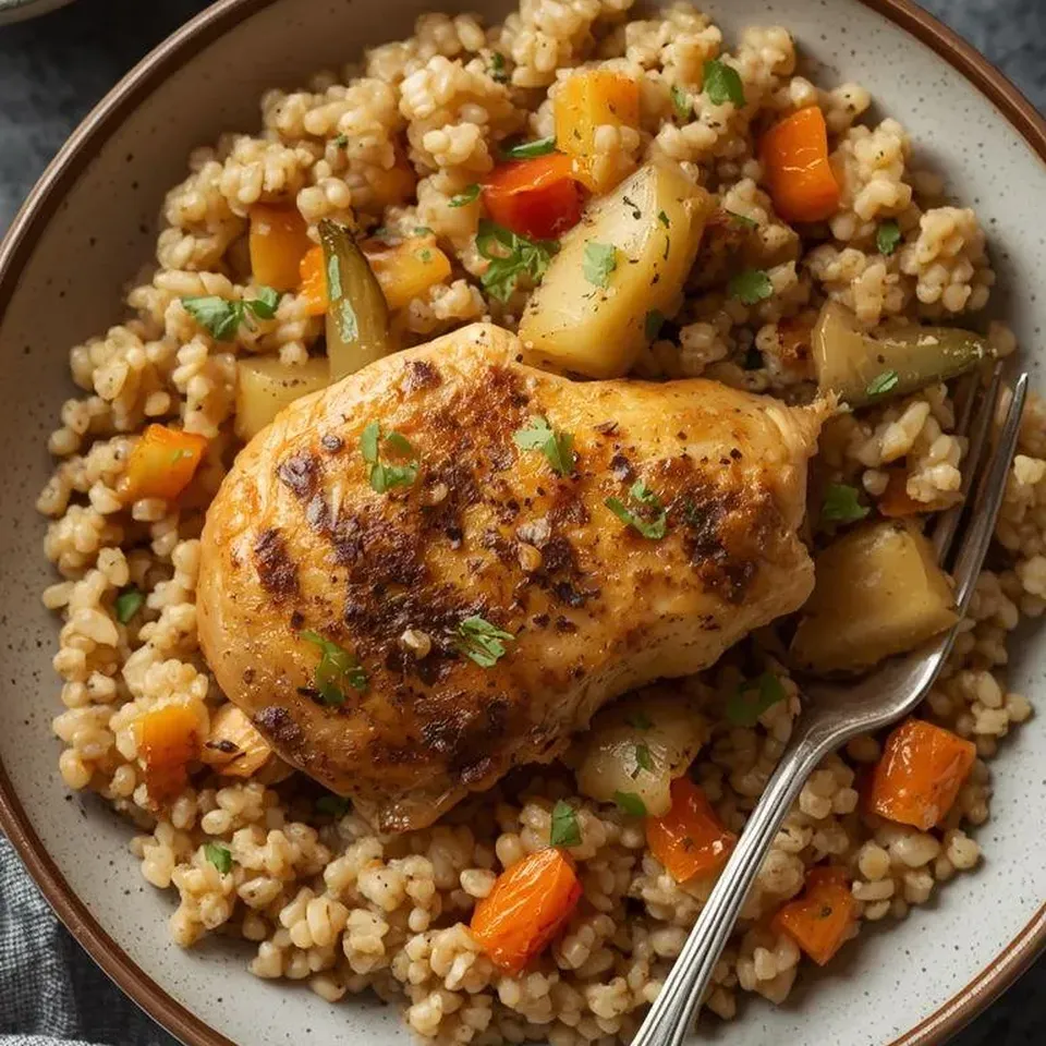 Kurczak z kaszą gryczaną i kapustą kwaszoną