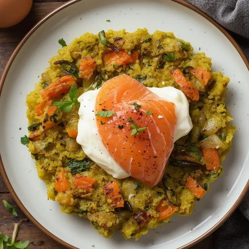 Jajecznica z wędzonym łososiem i szczypiorkiem