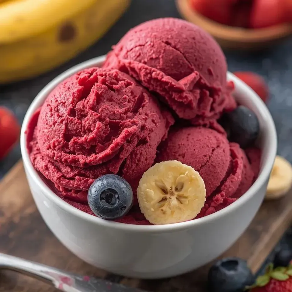 Sorbet z bananów i owoców jagodowych
