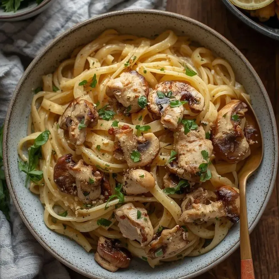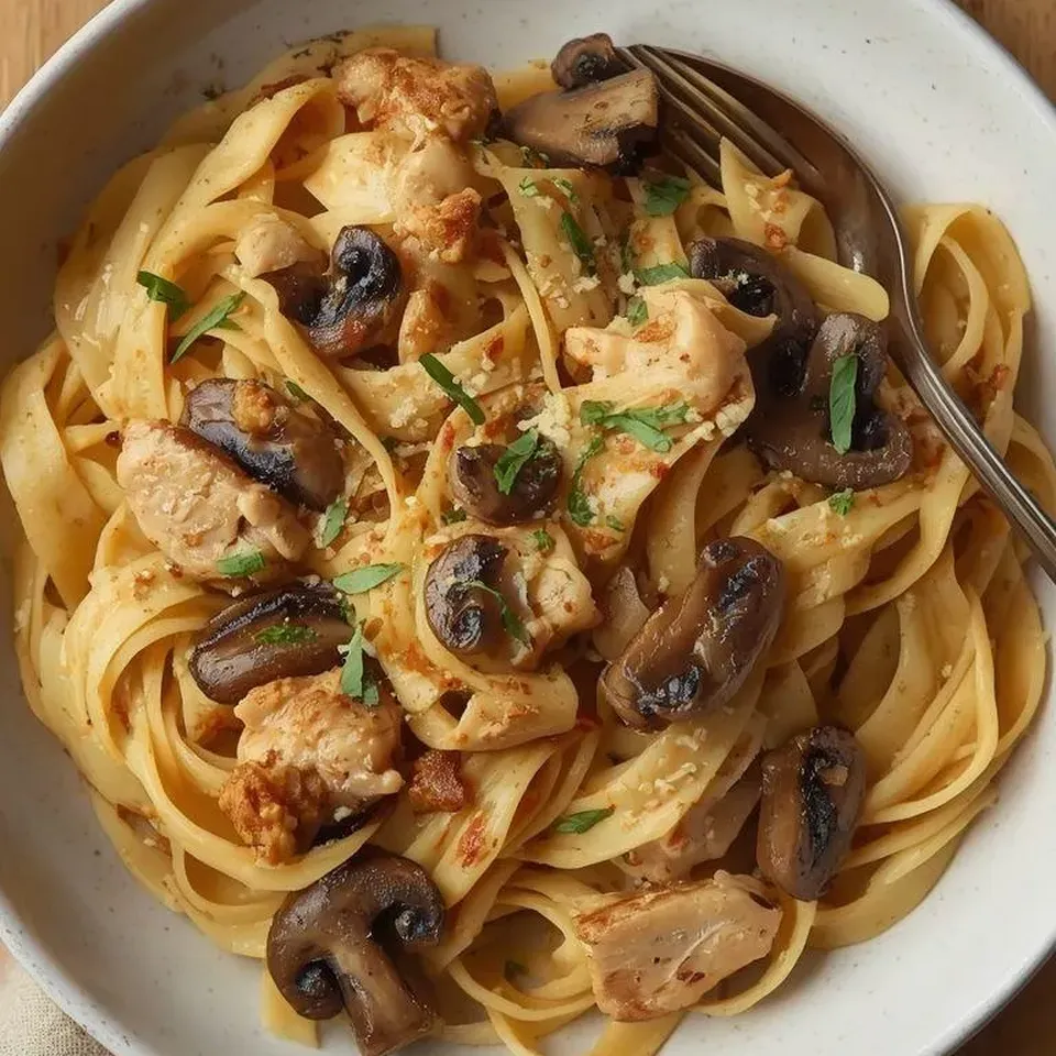 Makaron z kurczakiem i pieczarkami (wersja bezglutenowa)