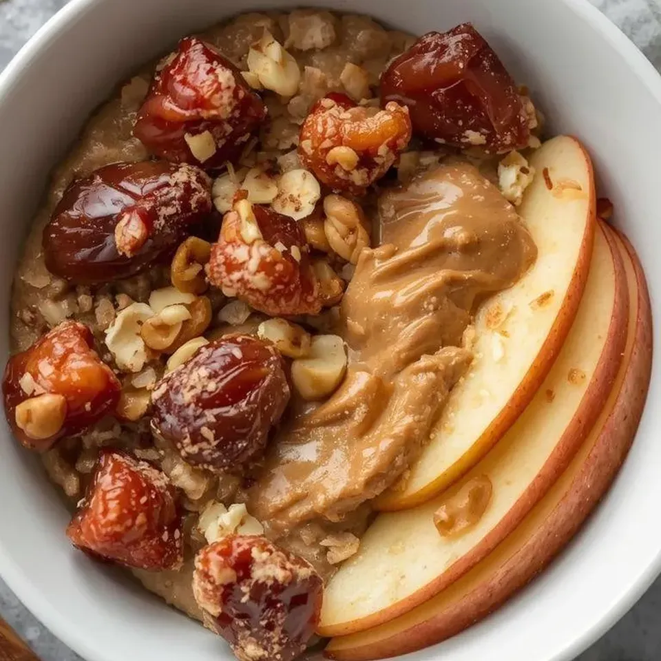 Owsianka z masłem orzechowym, daktylami i jabłkiem