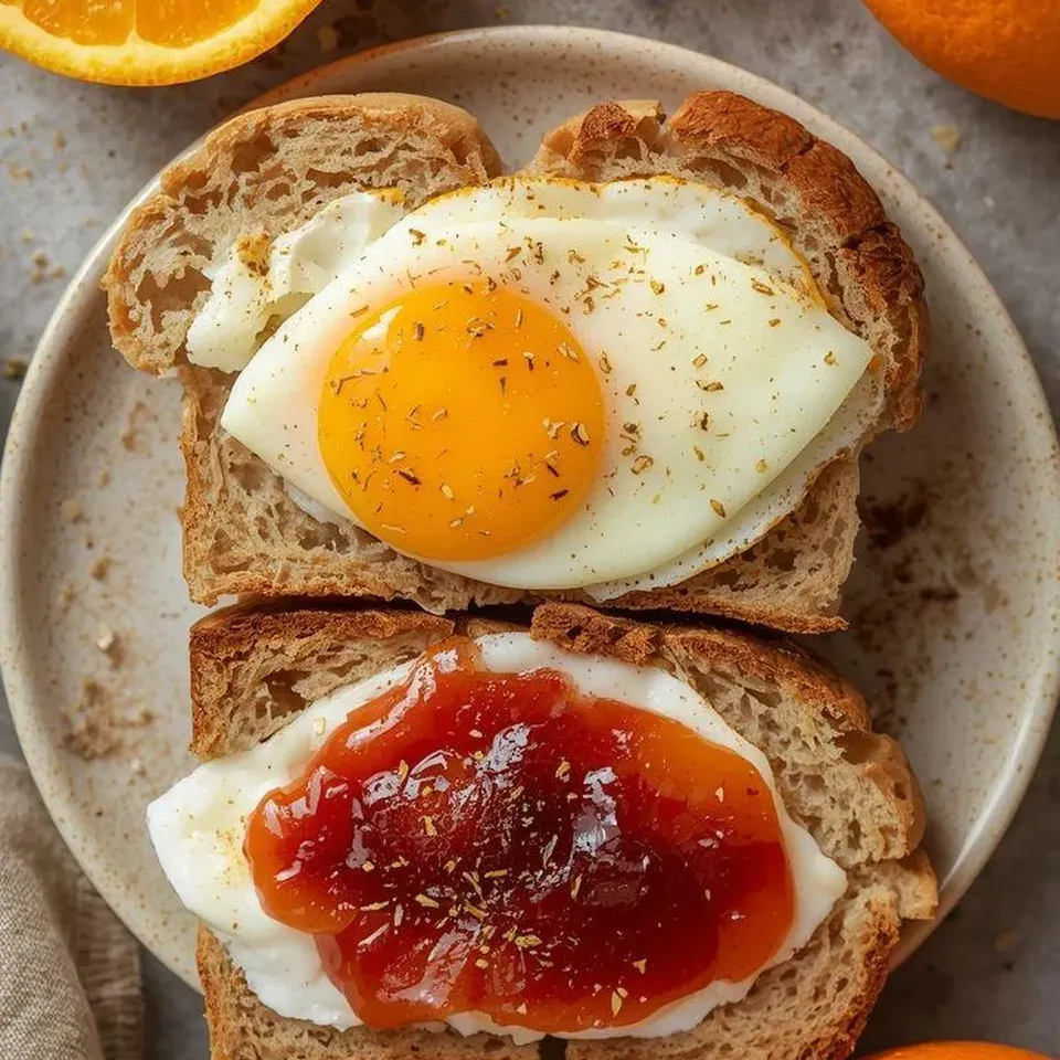 Bułka pełnoziarnista z jajkiem i powidłami śliwkowymi