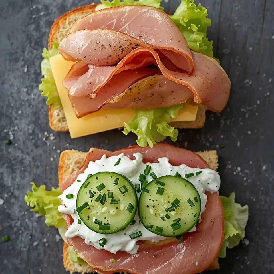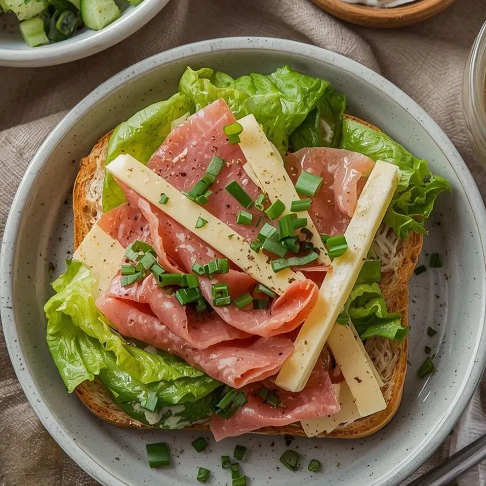 Chrupkie pieczywo z dżemem truskawkowym i salami