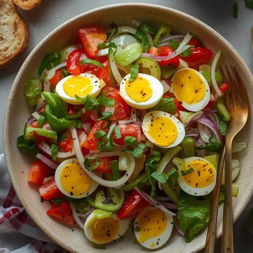 Jajko na miękko z sałatką ogórkową i chrupkim chlebem (Low Carb)