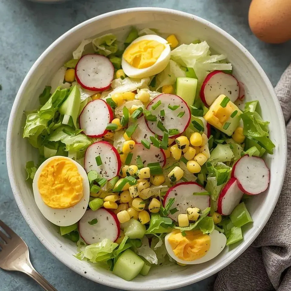 Sałatka z pomidorów, ogórków, sera emmentaler i jogurtu waniliowego
