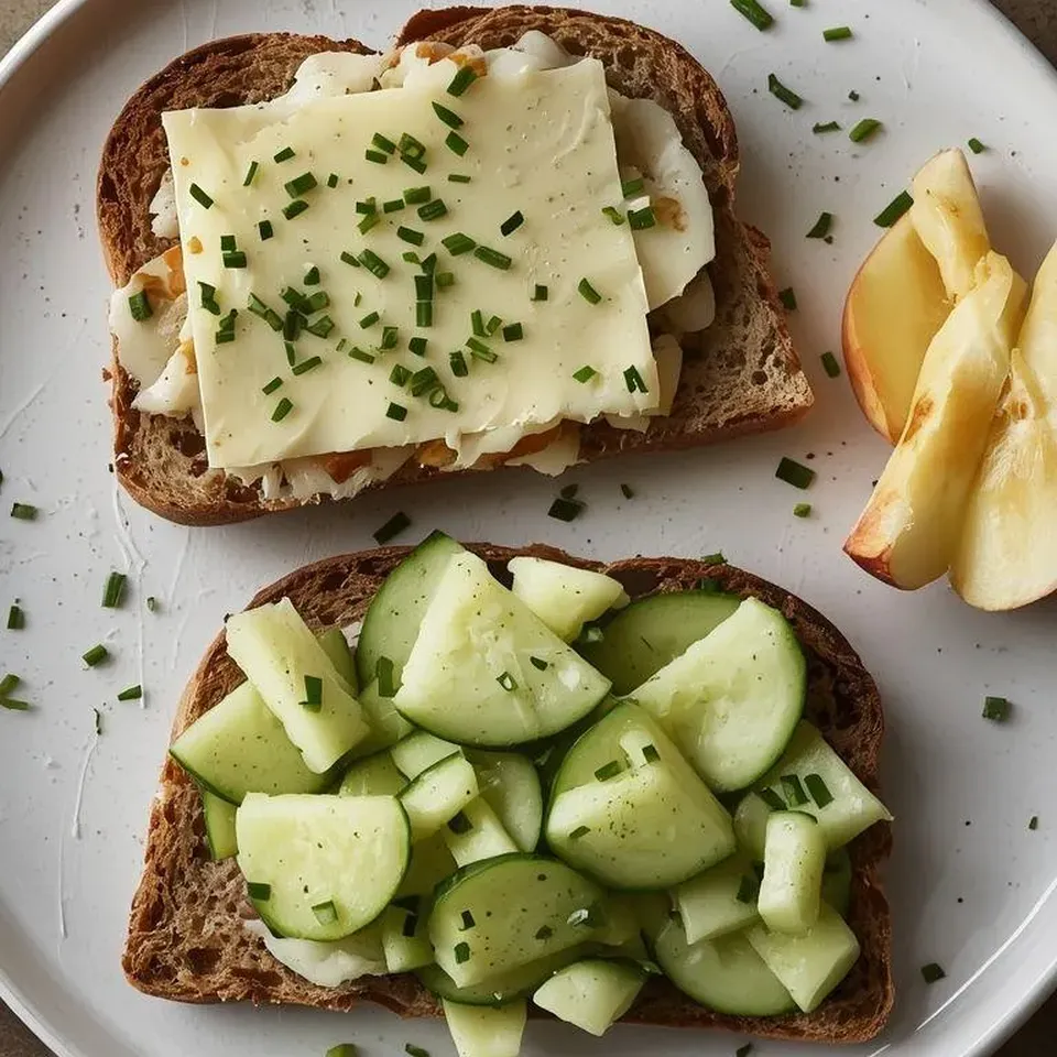 Chleb razowy z serem ementaler i sałatką z ogórków
