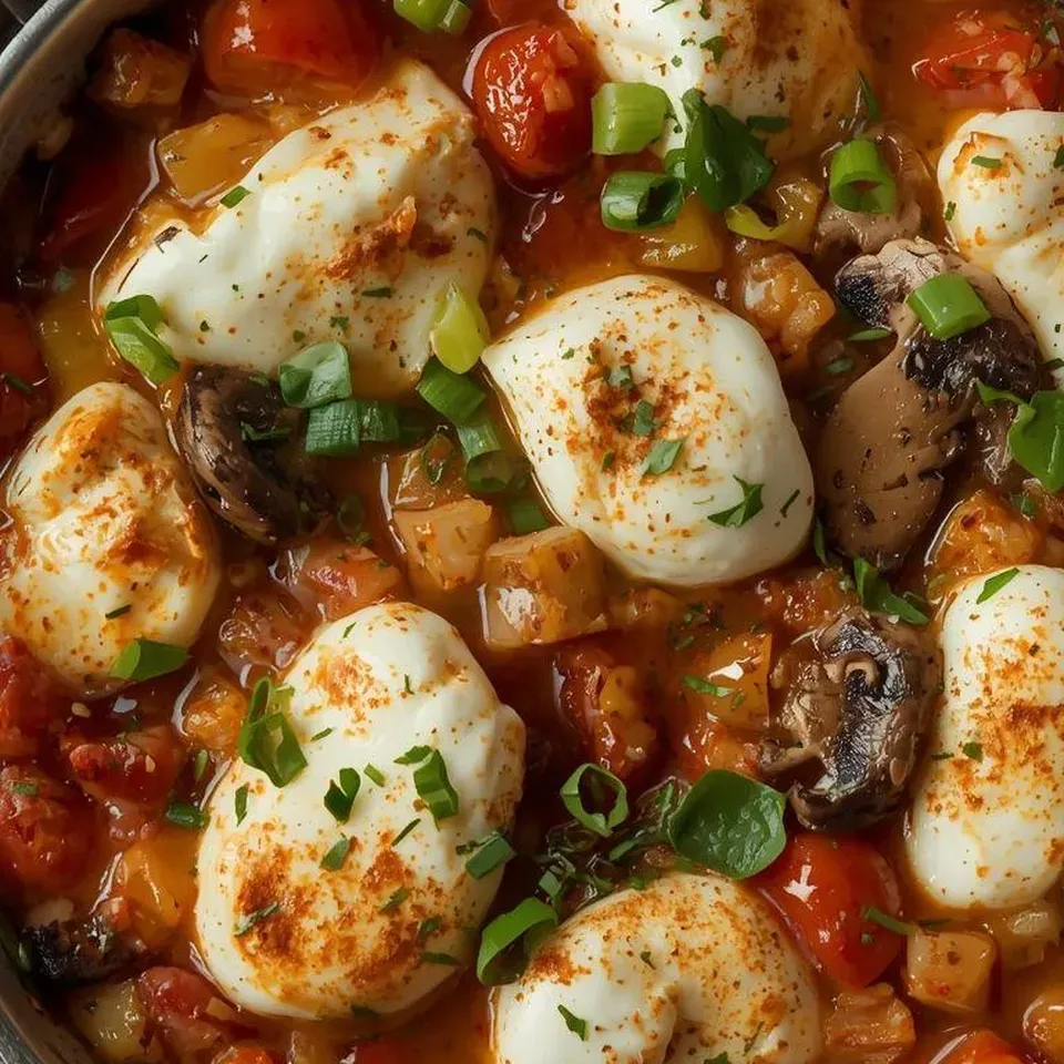 Patelnia pomidorowo-grzybowa z mozzarellą