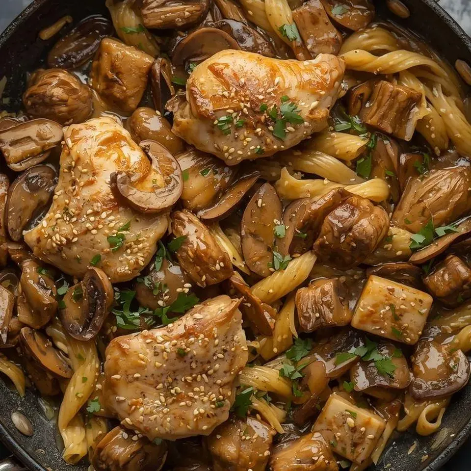 Pierś z indyka z makaronem w sosie pieczarkowym