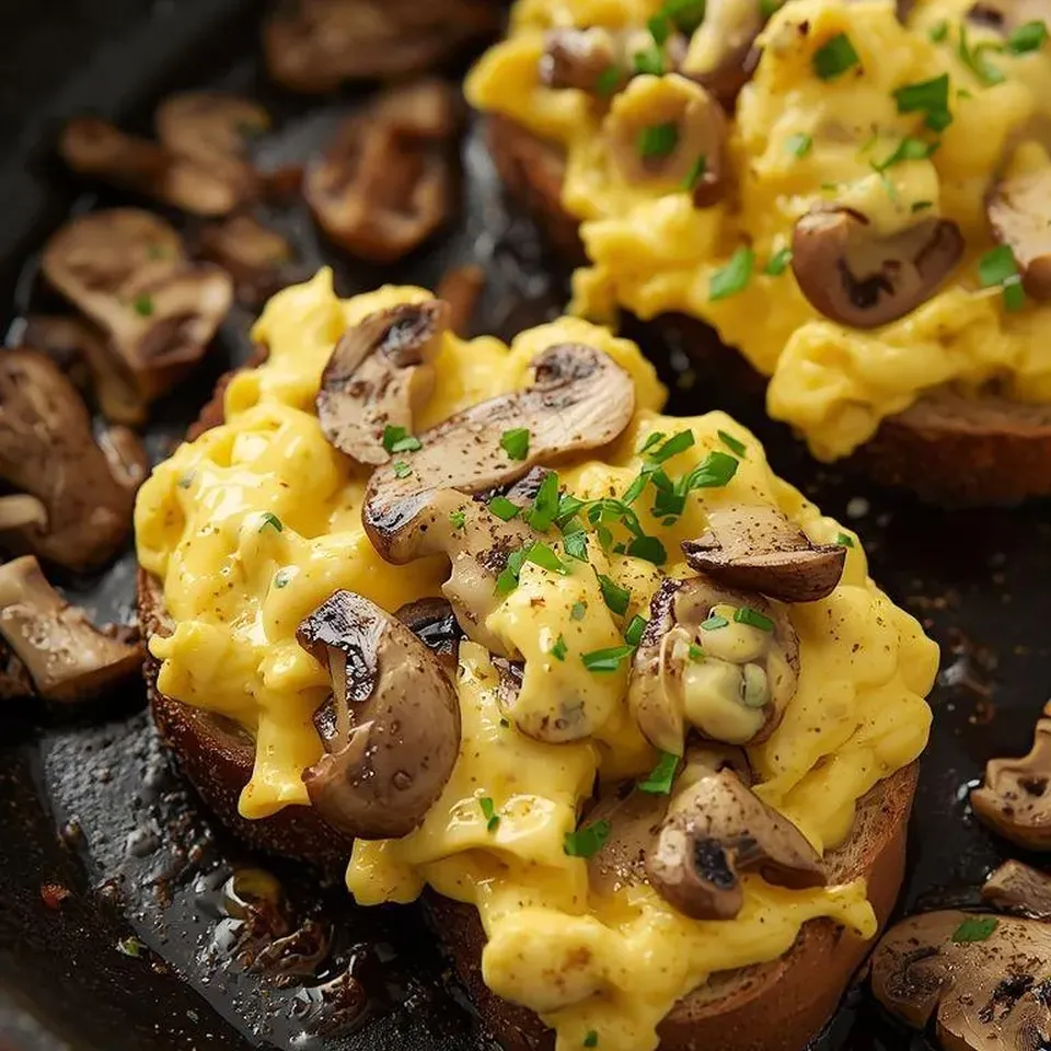 Jajecznica z grzybami i twarogiem jabłkowo-cynamonowym