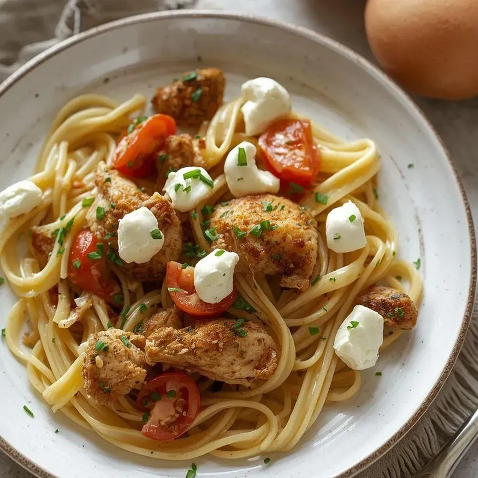 Kurczak z makaronem i mozzarellą