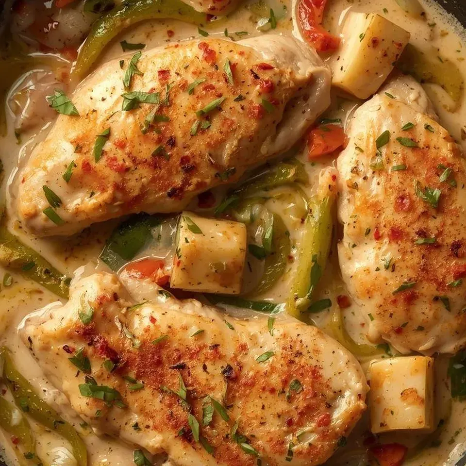 Kurczak cebulowo-paprykowy w śmietanowej sosie