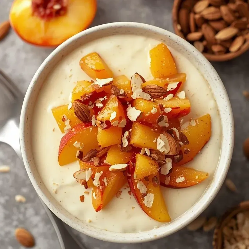 Śmietankowy krem z morelami, brzoskwiniami i posypką Müsli