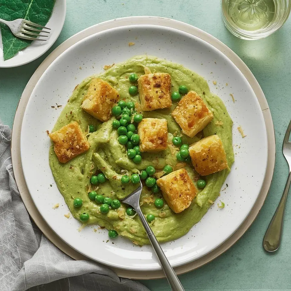 Sznycel wieprzowy z ziemniakami, groszkiem, marchewką i jogurtem pomarańczowym