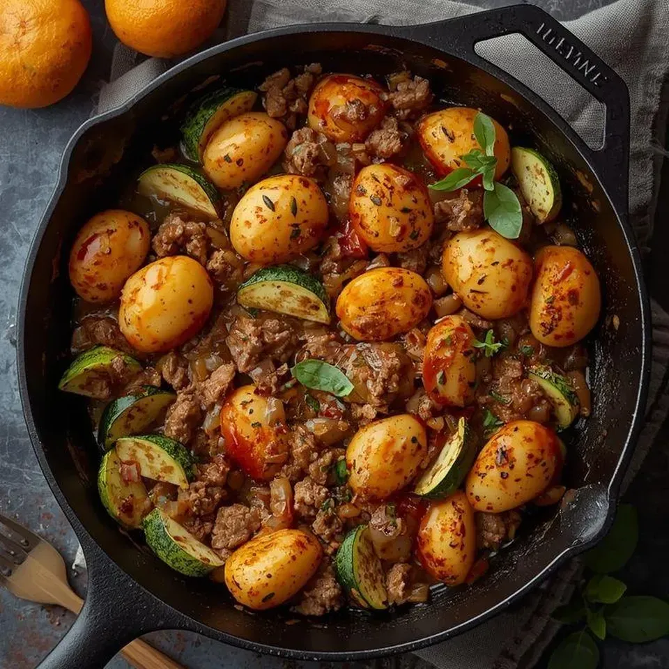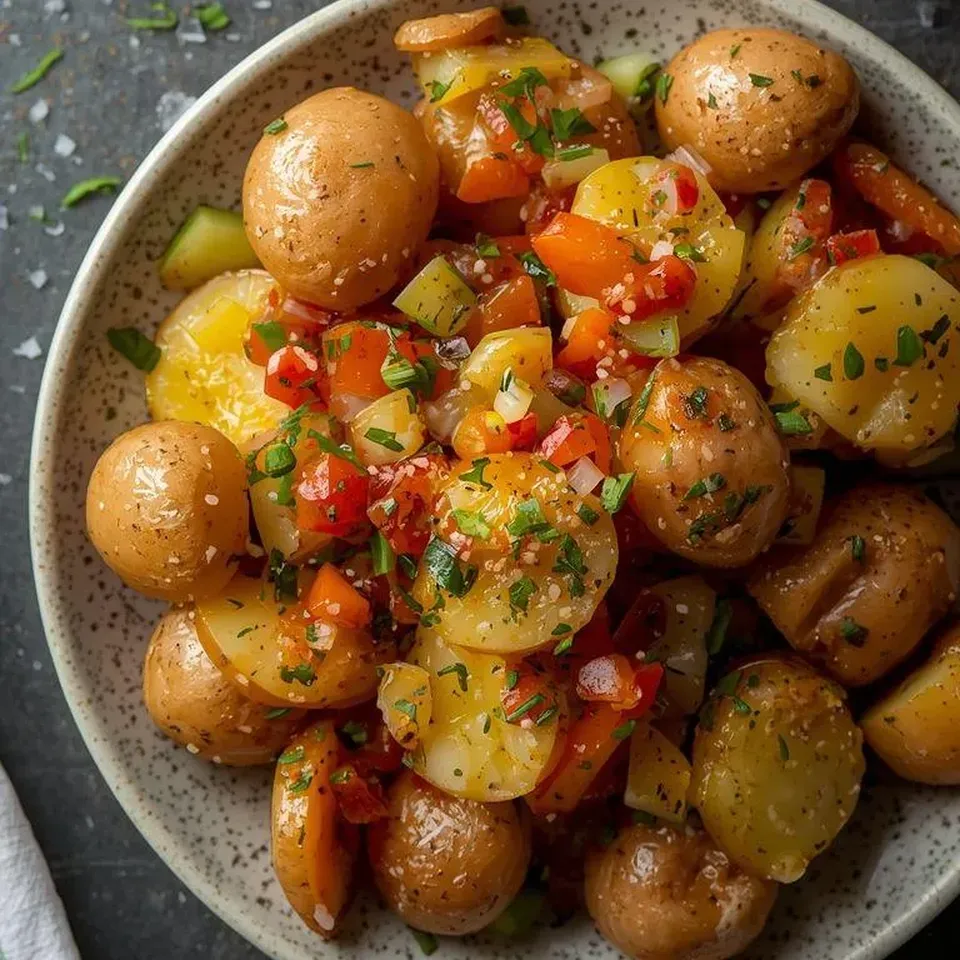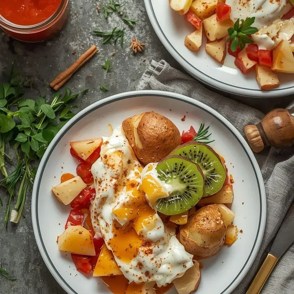 Ziemniaki z kremem ziołowym i sokiem pomidorowym