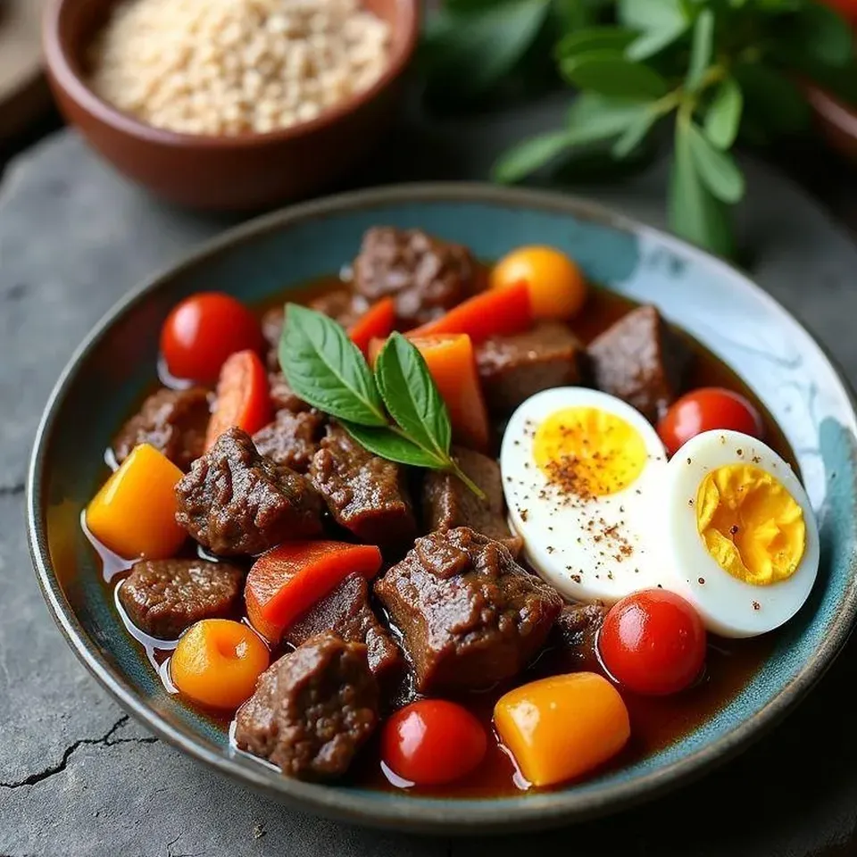 Gulasz wołowy z kaszą gryczaną i warzywami