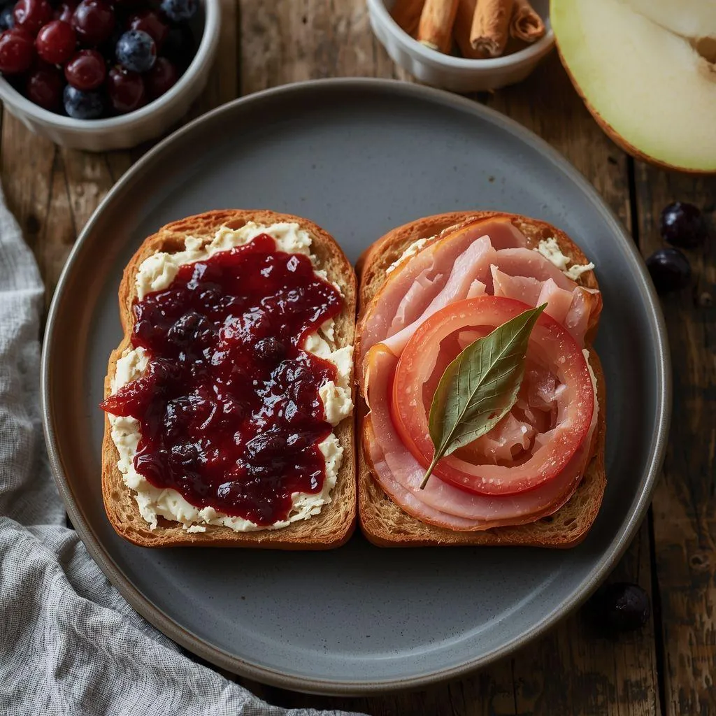 Bułka pełnoziarnista z konfiturą czarnych porzeczek