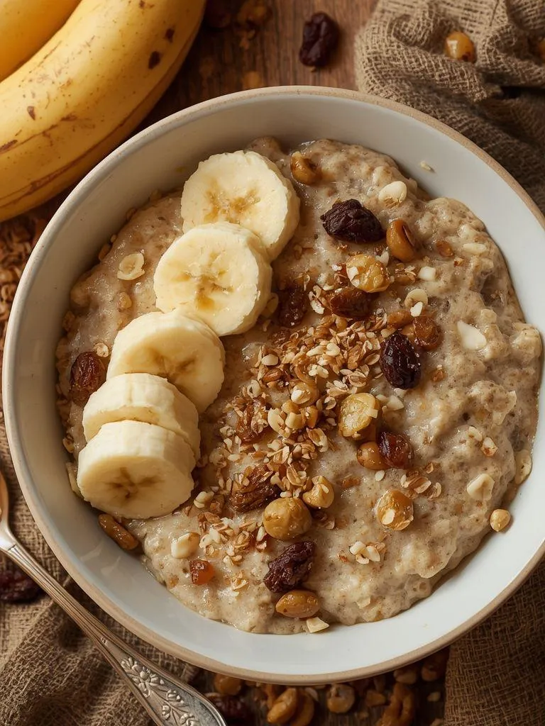 Jaglanka z bananem, amarantusem i rodzynkami (wersja lżejsza, bez laktozy)