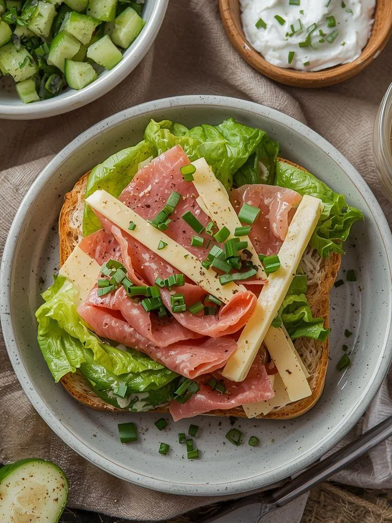 Zjedz kanapkę z warzywami i kiełkami (można je pominąć).