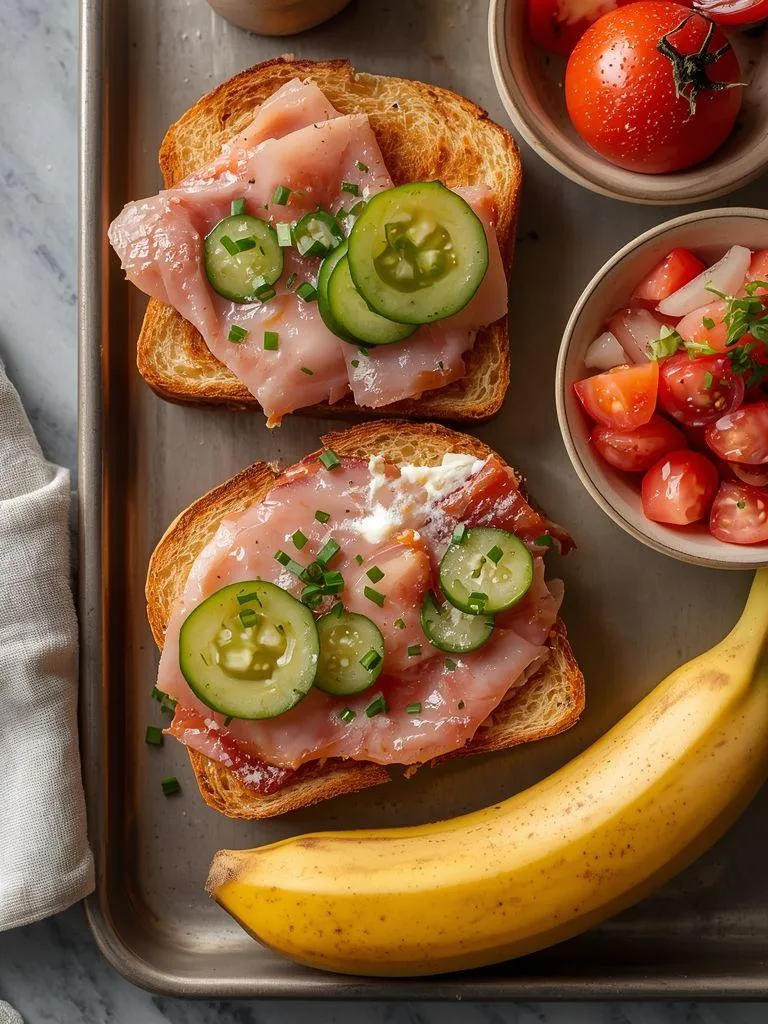 Kanapki z szynką, sałatką pomidorową i marynatą ziołową