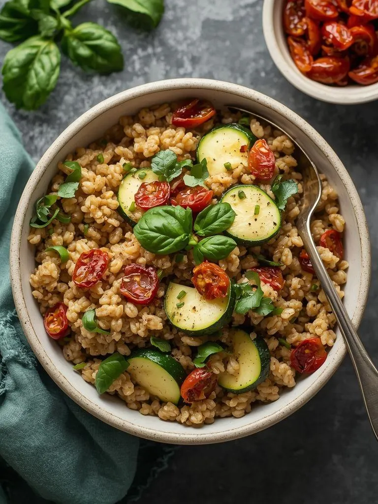Kasza jaglana z cukinią i suszonymi pomidorami