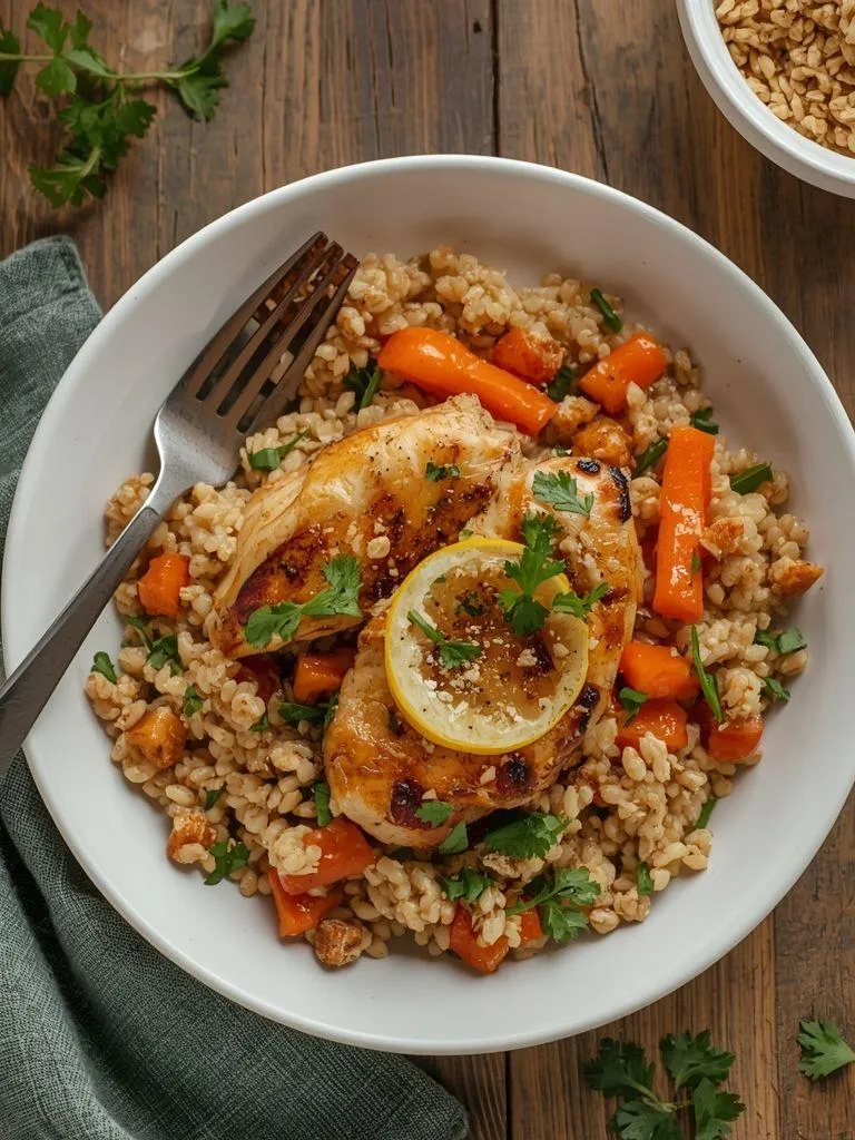 Kurczak z kaszą gryczaną i kapustą kwaszoną