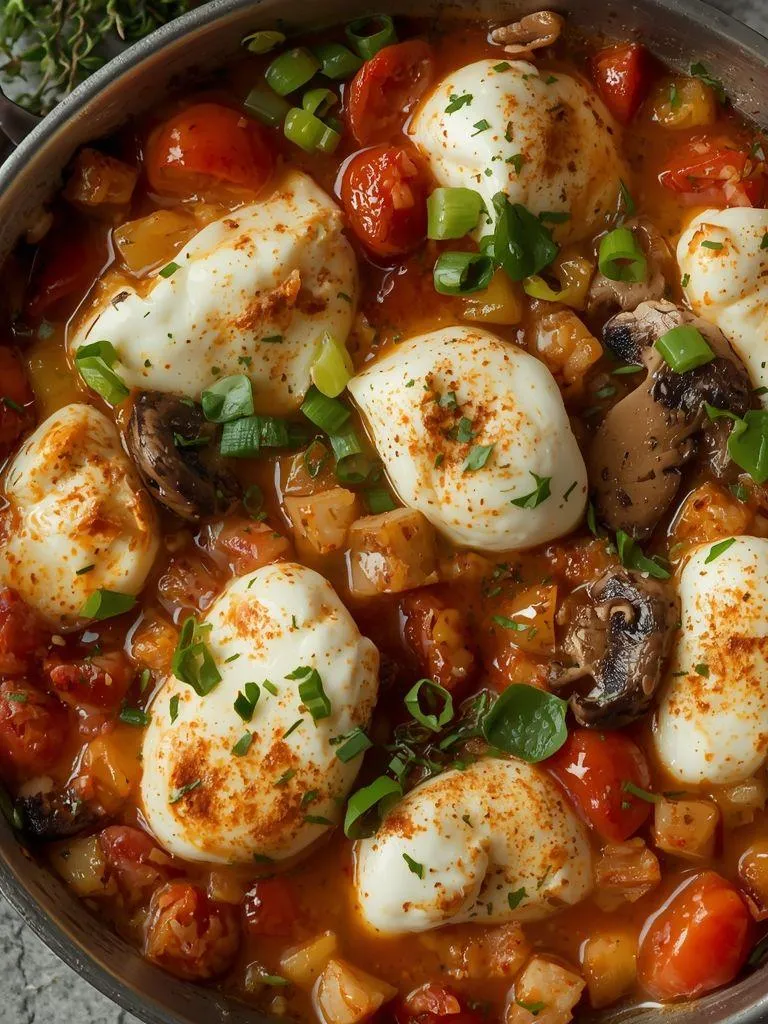 Patelnia pomidorowo-grzybowa z mozzarellą