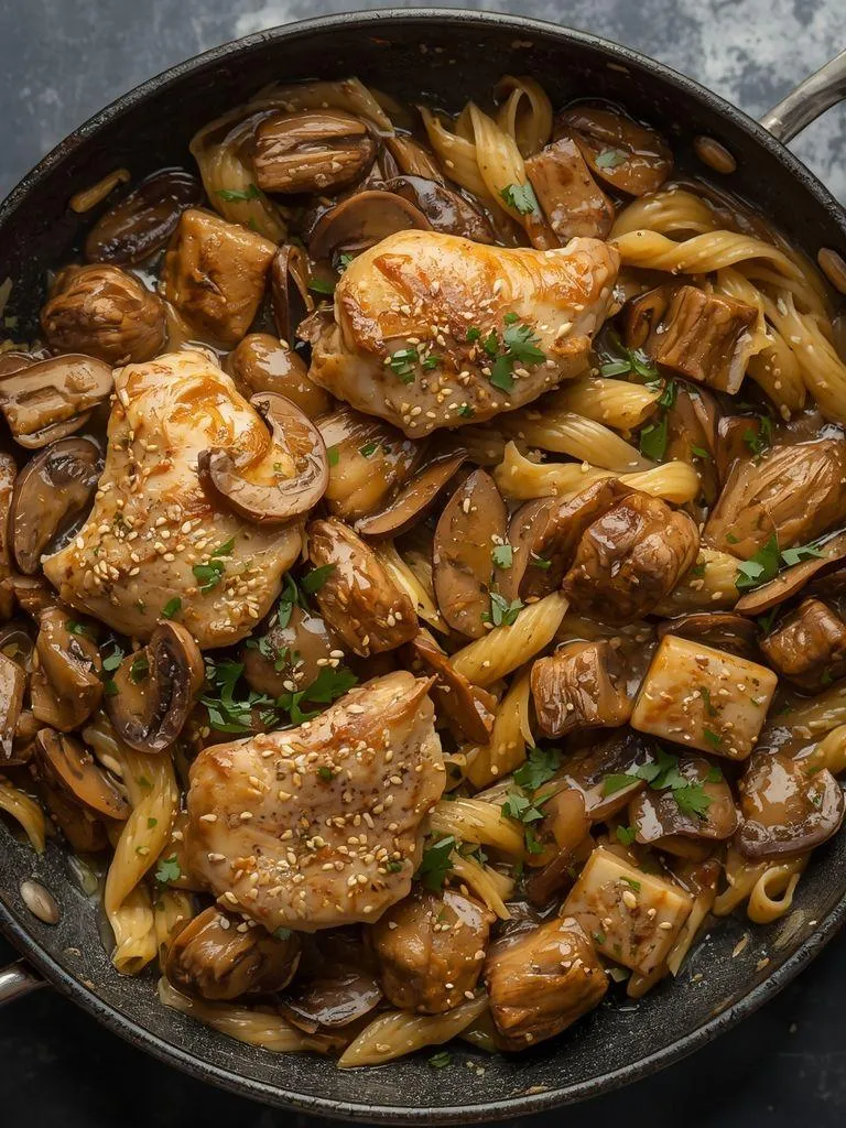 Pierś z indyka z makaronem w sosie pieczarkowym
