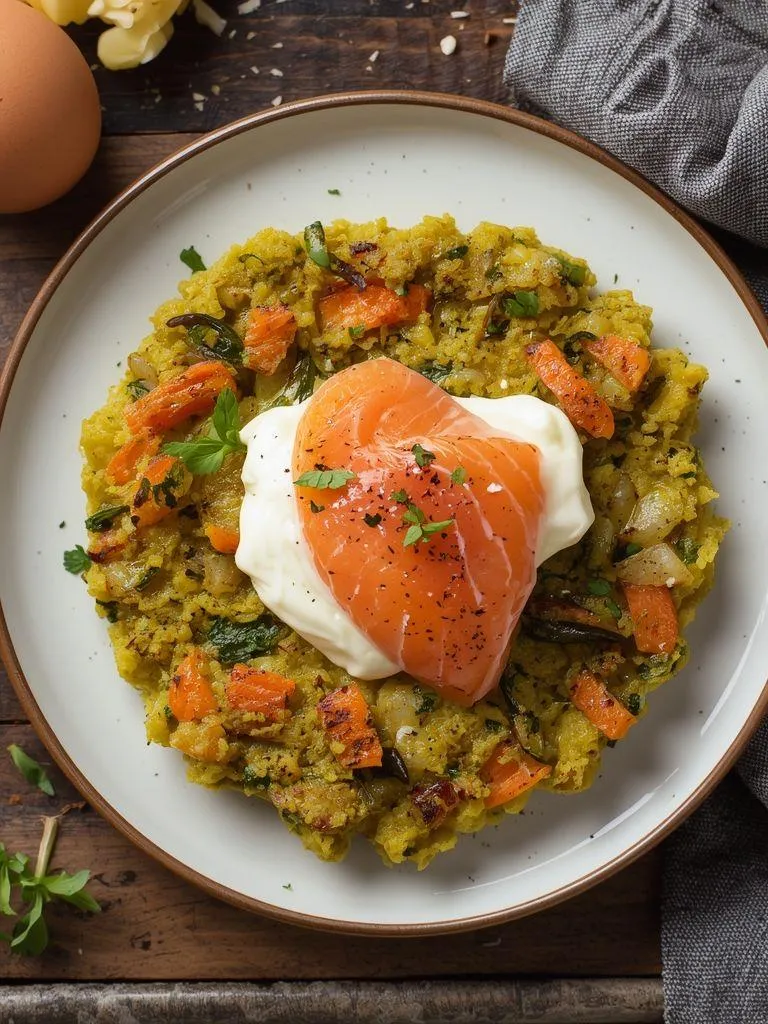 Rosty z cukinii i marchewki z serkiem śmietankowym i łososiem