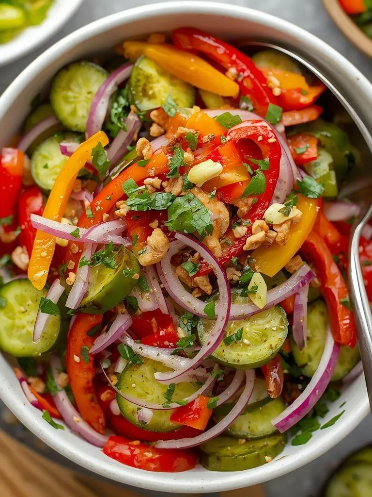 Surówka z ogórka kiszonego, papryki i czerwonej cebuli