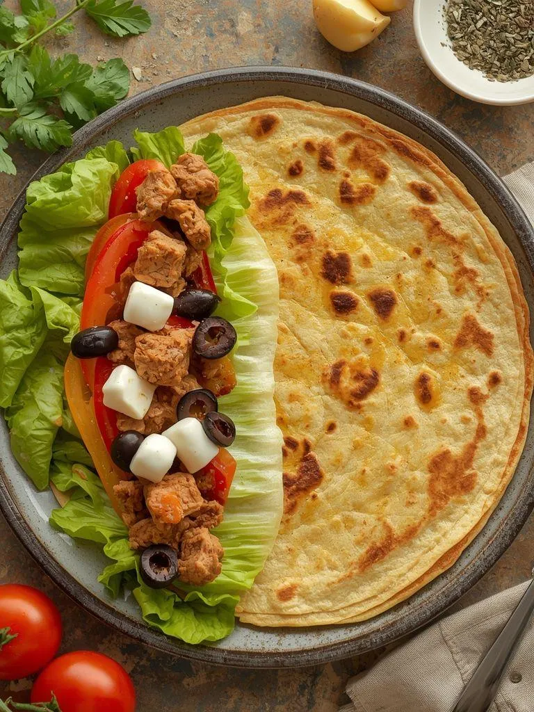 Nałóż pokrojone oliwki, pomidor, mozzarellę, mięso i paprykę. Zawiń ciasno, owiń w folię spożywczą.
