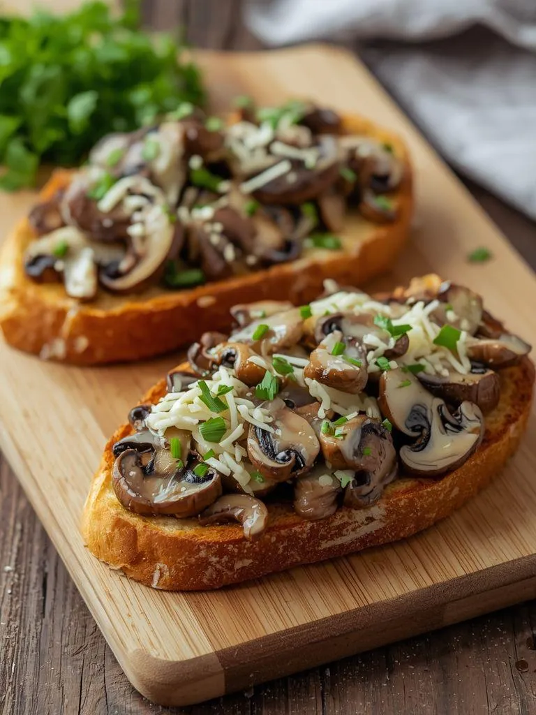 Pieczarki rozłóż na chlebie, po równo dodaj startego sera na kromki chleba i opiecz w piekarniku aż ser się rozpuści lub lekko się spiecze.