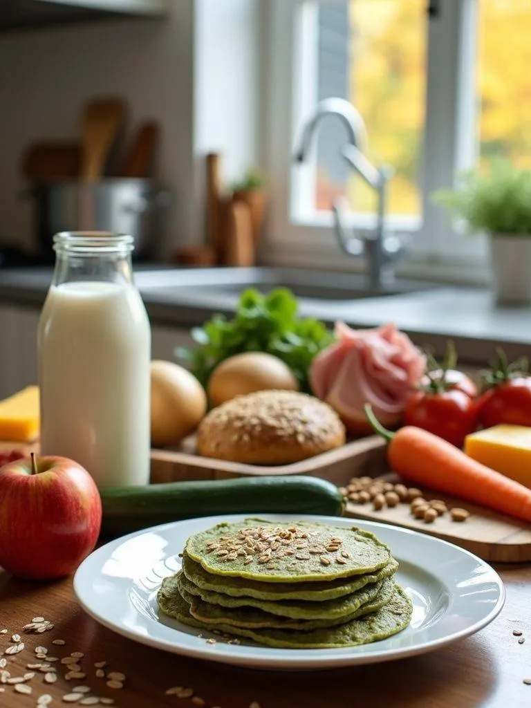 Przygotowanie trwa 35 minut. Składniki (na jedną porcję): – nasiona soczewicy – 5 łyżek (75 g), – pasata pomidorowa – szklanka (240 g), – marchew – sztuka (45 g), – cebula – plaster (20 g), – oliwa z oliwek – łyżeczka (5 g), – ziemniaki – 2 sztuki (200 g), – sól – szczypta (0,2 g), – pieprz – szczypta (0,2 g), – słodka papryka – ½ łyżeczki (2 g), – ogórek kiszony – sztuka (50 g). Przepis: 1. Soczewicę należy namoczyć w wodzie na noc. 2. Następnie przesypać do garnka i zalać wodą, a następnie gotować na miękkość (od 1 do 1,5 godziny). 3. Ziemniaki należy obrać i ugotować w osolonej wodzie. 4. Rozgrzać oliwę z oliwek na patelni. 5. Drobno pokroić cebulę i zeszklić ją na oliwie. 6. Marchew należy obrać, pokroić w talarki i wrzucić do cebuli, a następnie dusić przez 10 minut. 7. Przygotowanie zalać pasatą, dodać soczewicę, doprawić i gotować przez 5 minut. 8. Gdy ziemniaki będą miękkie, przełożyć je na talerz. 9. Następnie dodać soczewicę w sosie pomidorowym. 10. Podawać całość z ogórkiem kiszonym. Wartość odżywcza (1 porcja): – energia: 590 kcal, – białko: 22,1 g, – tłuszcze: 11,1 g, – węglowodany: 105,9 g.5. Kolacja z naleśnikami ze szpinakiem