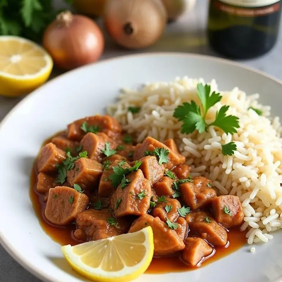 Sznycel wieprzowy z ziemniakami, groszkiem, marchewką i jogurtem pomarańczowym